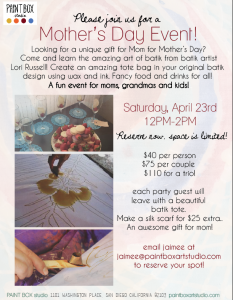 This is a mother/ daughter batik workshop being hosted at Paint Box Art Studio for Mother's Day