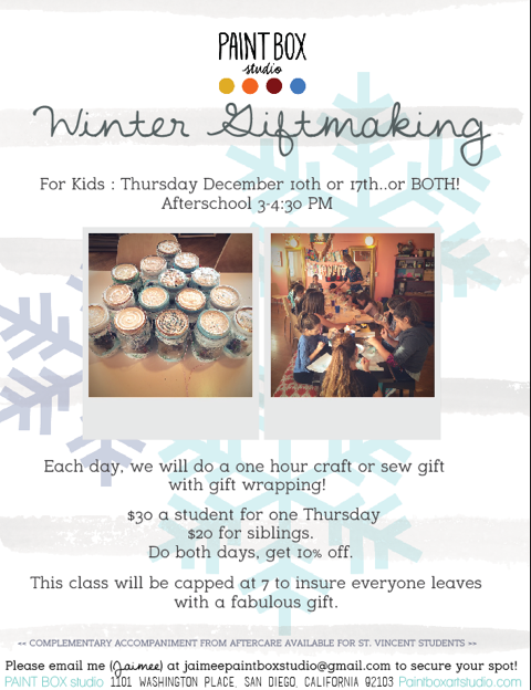 $30 per student, $20 for sibling. Sign up for both days and get 10% off with code “giftmaker10”!